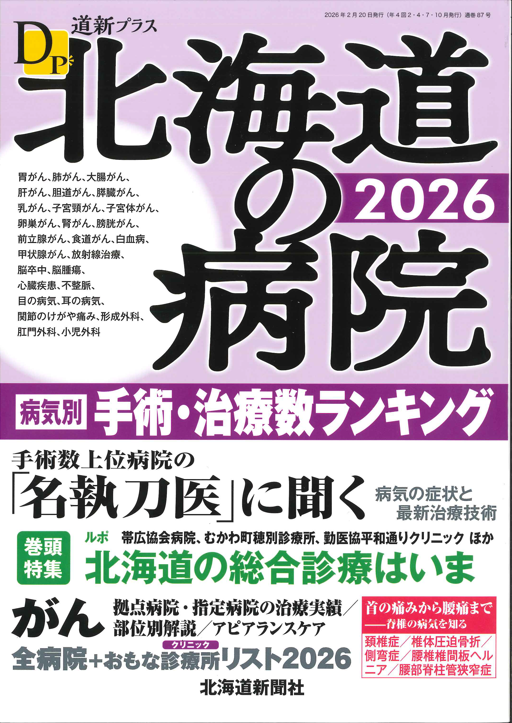 誌面には、当院も含め、道内のがん診療連携病院と北海道がん診療指定病院における治療実績(病期別内訳、治療内容など)が掲載されています。
