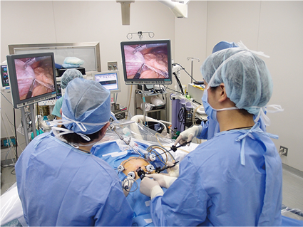 また、当院では、がんの状態によって、手術のほか、抗がん剤や放射線治療など、いろいろな治療方法を組み合わせる集学的治療を積極的に行っています。集学的治療は、外科医、診断医、腫瘍内科医などの医師のほか、看護師や薬剤師などの専門スタッフとの協力が必要です。当院では集学的治療の体制を整え、胃がんに対する高度医療を展開しています。