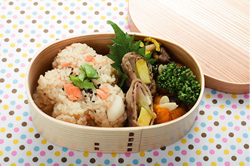 | 6 | ※他に「さつまいもとりんごの肉巻き」「かぼちゃの茶巾絞り」「しめじのゆず和え」などを詰めて お弁当にしてみました。 |